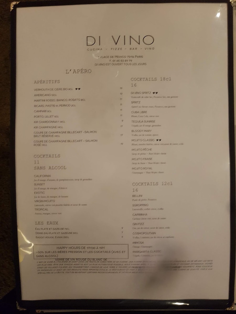 Welcome to Di Vino, a hidden gem in the heart of Paris at 1 Pl. de Mexico, just a stone's throw from the Eiffel Tower. Here, you will indulge in exceptional Italian cuisine that many patrons claim rivals that of Italy itself. The raves from customers, like Laura and Pamela, emphasize the remarkable dishes—from exquisite scallops with risotto to authentic Neapolitan pizza.